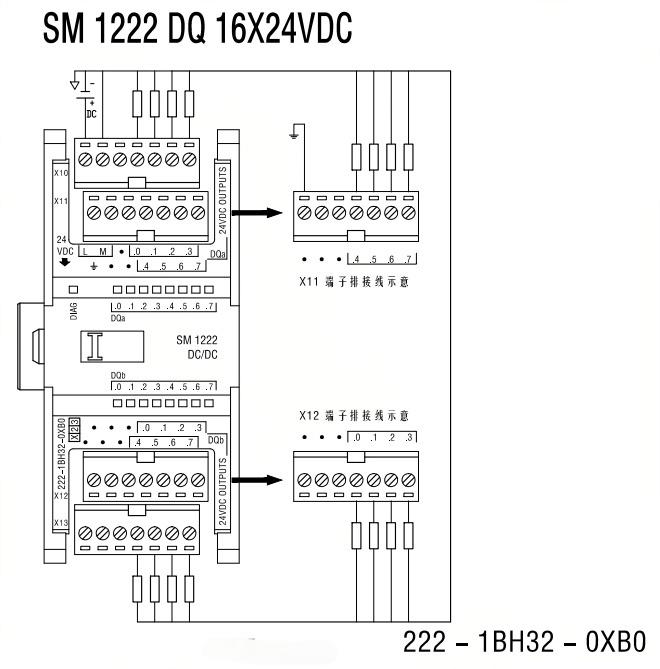 支持與S7-1200 系列混合使用,提供豐富的數(shù)字量、模擬量、通信等模塊,滿足各種復(fù)雜應(yīng)用需求。接線示意