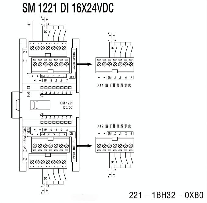 支持與S7-1200 系列混合使用,提供豐富的數字量、模擬量、通信等模塊,滿足各種復雜應用需求。接線示意