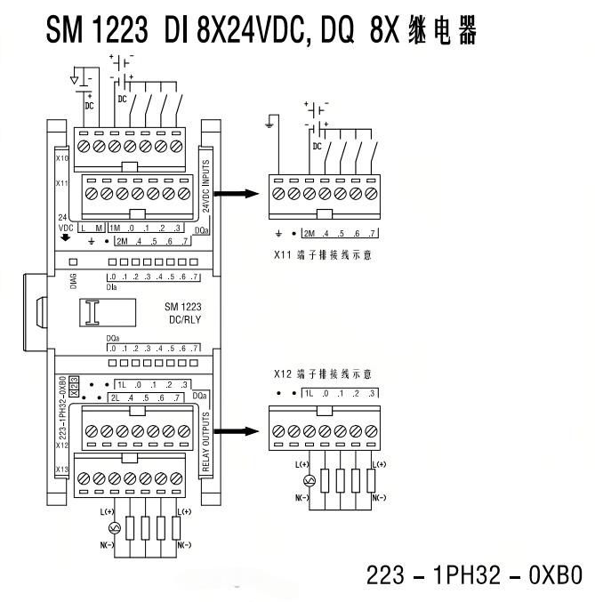 支持與S7-1200 系列混合使用,提供豐富的數字量、模擬量、通信等模塊,滿足各種復雜應用需求。接線示意