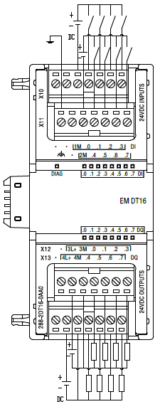數字量輸入輸出模塊,8DI/8DO(晶體管),24VDC 源型(PNP)/ 漏型(NPN)光電隔離輸入,24VDC 源型(PNP)光電隔離輸出,SMART200 系列標準 CPU 擴展模塊。