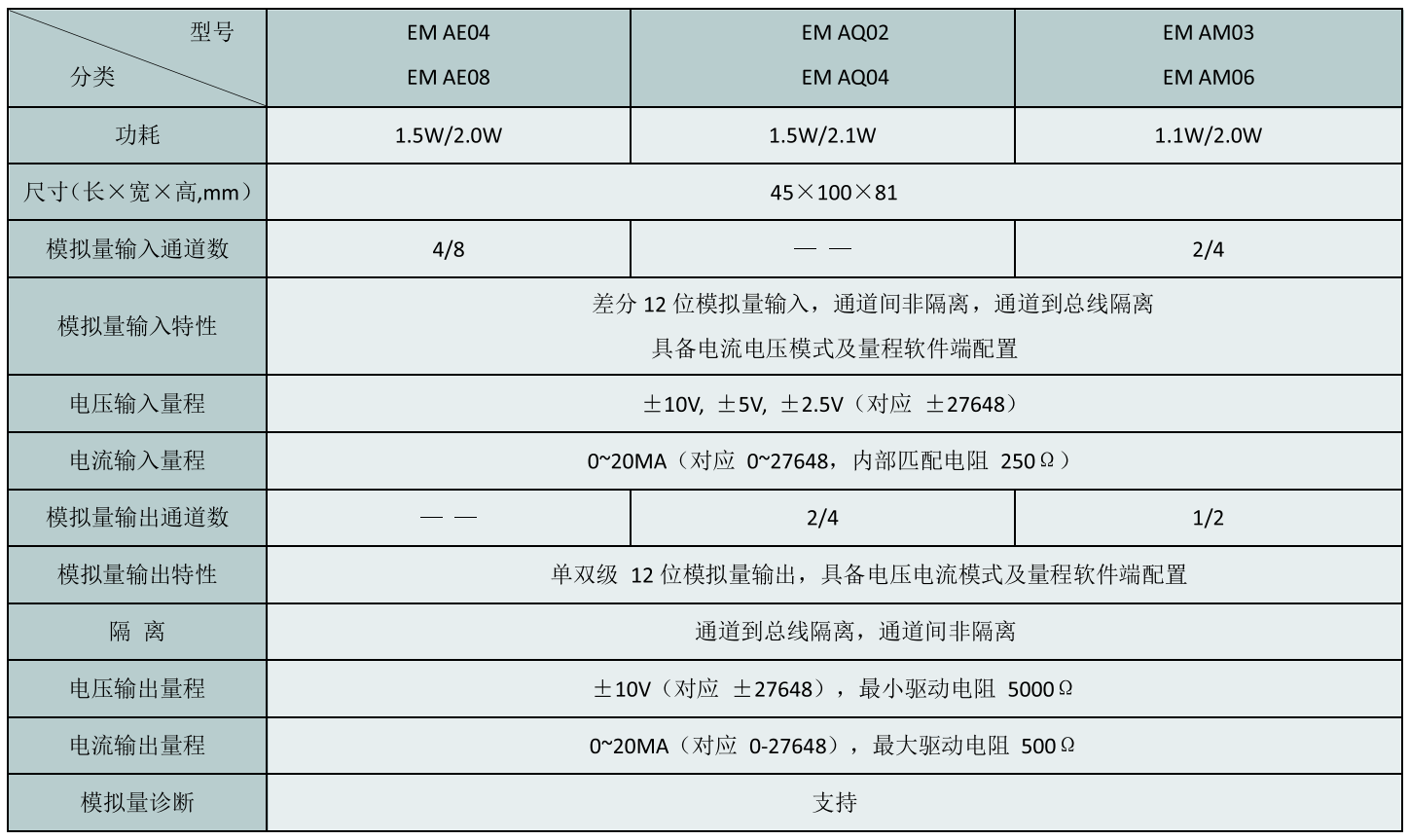 模擬量輸入模塊,4AI 差分 電流(0~20mA)/ 電壓(±2.5V,±5V,±10V)輸入,分辨率 12bits,精度 ±0.1%~±0.3% 滿量程,超限/電源未接入 診斷報警,SMART200 系列標準 CPU 擴展模塊。