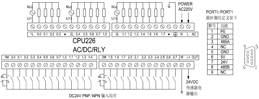 LTV3 CPU226 AC/DC/RLY,216-2BD23-0XB0,220VAC 供電, 24DI/16DO(繼電器)/2RS485,24 點(diǎn)光電隔離輸入(源型 PNP 輸入 / 漏型 NPN 輸入,DC24V ± 20%),16 點(diǎn)機(jī)械隔離輸出(繼電器,驅(qū)動(dòng) 5~250VAC/5~30VDC,浪涌電流 5A,額定電流 2A),6 路單相 50KHz / 4 路 AB相 50KHz (4 倍數(shù)可達(dá) 200KHz)高速計(jì)數(shù)輸入,提供 24VDC 500mA 電源輸出 ,集成 2 個(gè) RS485 串行端口,支持 PPI 、MODBUS 、USS 等通訊協(xié)議及自由口等通信,數(shù)據(jù)永久保存,支持?jǐn)?shù)字量模塊、模擬量模塊、溫度模塊、運(yùn)控模塊及稱重模塊擴(kuò)展。