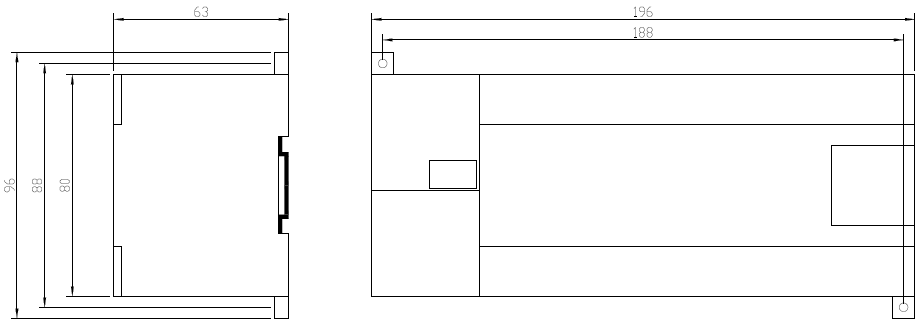 支持軟件 200 系列編程軟件 程序存儲(chǔ)器 24K 數(shù)據(jù)存儲(chǔ)器 10K 掉電保持存儲(chǔ)器 10K 掉電數(shù)據(jù)保持方式 永久保存 加密方式 4 級(jí)加密 萬(wàn)年歷時(shí)鐘 內(nèi)置,電池驅(qū)動(dòng) 功耗 12W 尺寸(長(zhǎng)×寬×高) 196×96×63 mm 串行端口 2xRS485 級(jí)連擴(kuò)展模塊數(shù) 7 數(shù)字量輸入點(diǎn)數(shù) 24 數(shù)字量輸入特性 光電隔離輸入,源型(PNP)輸入/漏型(NPN)輸入均可,24VDC±20% 單相高速計(jì)數(shù)器 6 路,最高 50KHz A/B 相高速計(jì)數(shù)器 4x50KHz,4 倍速最高可達(dá) 200KHz 分辨率 數(shù)字量輸出點(diǎn)數(shù) 16 數(shù)字量輸出特性 機(jī)械隔離輸出,驅(qū)動(dòng) 5~250VAC/5~30VDC,浪涌電流 5A,額定電流 2A,空載 1000 萬(wàn)次壽命,額定負(fù)載 10 萬(wàn)次壽命 輸入電源 175~256VAC 隔離電源 輸出電源 24VDC± 20%,最高 500mA 存
