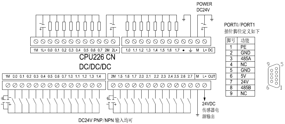 ST CPU226 DC/DC/DC,216-2AD23-0XB8,24VDC 供電, 24DI/16DO(晶體管)/2RS485,24 點(diǎn)光電隔離輸入(源型 PNP 輸入 / 漏型 NPN 輸入,DC24V ± 20%),16 點(diǎn)光電隔離輸出(晶體管 源型 PNP 輸出,驅(qū)動(dòng) 20~28.8VDC,浪涌電流 8A,額定電流 0.7A),6 路單相 50KHz / 4 路 AB相 50KHz (4 倍數(shù)可達(dá) 200KHz)高速計(jì)數(shù)輸入,4×100KHz 高速脈沖輸出,提供 24VDC 500mA 電源輸出 ,集成 2 個(gè) RS485 串行端口,支持 PPI 、MODBUS 、USS 等通訊協(xié)議及自由口等通信,數(shù)據(jù)永久保存,支持?jǐn)?shù)字量模塊、模擬量模塊及溫度模塊。