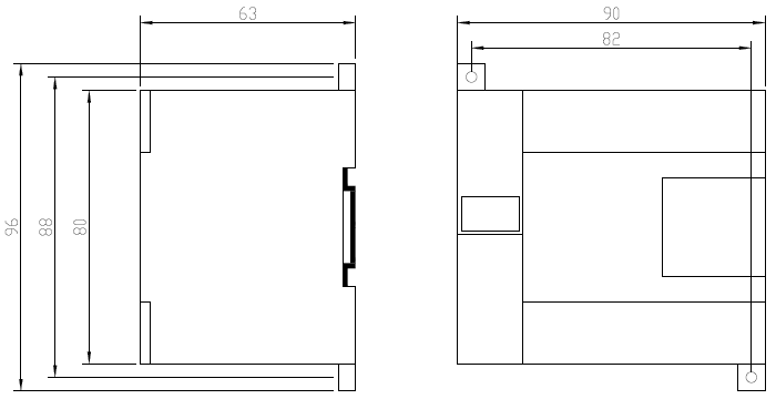 支持軟件 200 系列編程軟件 程序存儲器 4K 數據存儲器 2K 掉電保持存儲器 2K 掉電數據保持方式 永久保存 加密方式 4 級加密 萬年歷時鐘 內置,電池驅動 功耗 5W 尺寸(長×寬×高) 90×96×63 mm 串行端口 1xRS485 級連擴展模塊數 2 數字量輸入點數 8 數字量輸入特性 光電隔離輸入,源型(PNP)輸入/漏型(NPN)輸入均可,24VDC±20% 單相高速計數器 4 路,最高 10KHz A/B 相高速計數器 2x10KHz,4 倍速最高可達 40KHz 分辨率 數字量輸出點數 6 數字量輸出特性 光電隔離輸出,源型(PNP)輸出,驅動 20~28.8VDC,浪涌電流 8A,額定電流 0.7A 高速脈沖輸出特性 2x20KHz 輸入電源 20.4~28.8VDC 共模抑制 輸出電源 24VDC±20%,最高 500mA 存